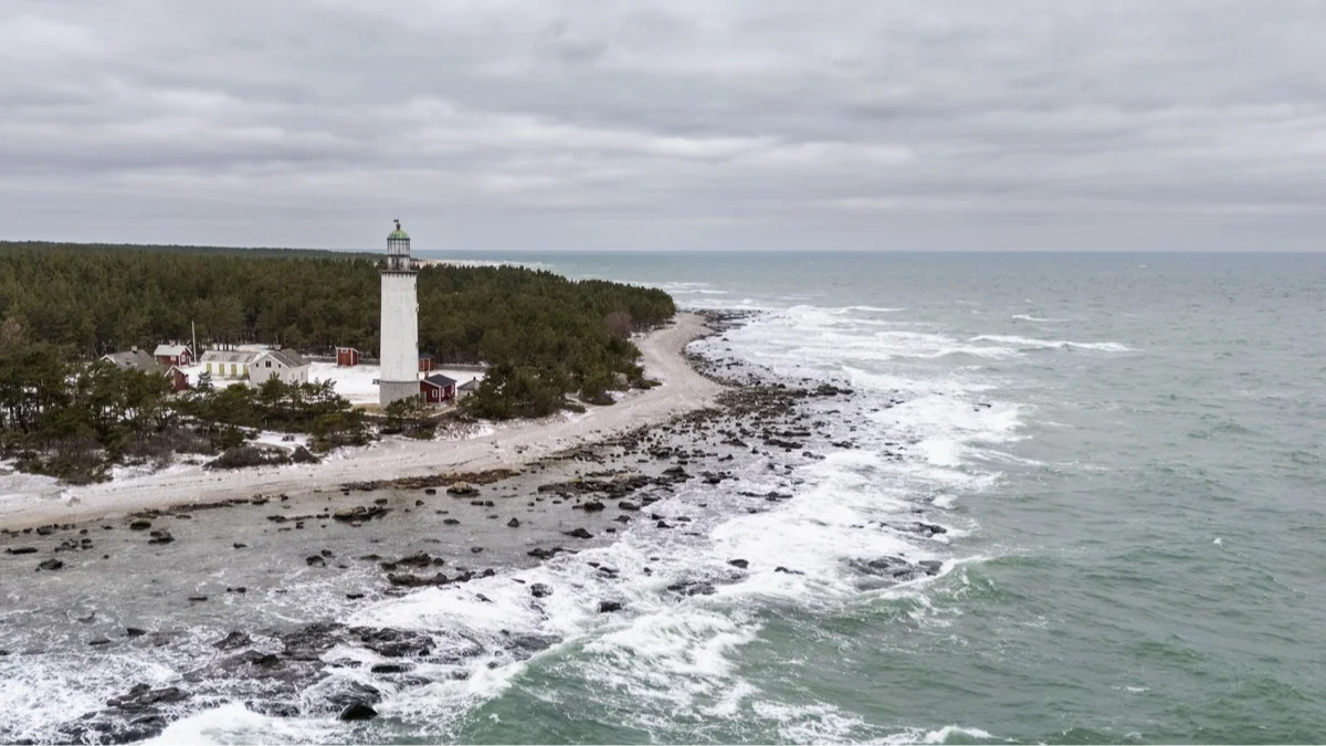Над обрывом Балтийского моря стоят шведские боевые машины пехоты (БМП) CV90, похожие на танки. Они целятся в покрытое перистыми облаками небо, через которое пытается пробиться холодное февральское солнце. Раз в десять минут в небе появляется объект, напоминающий беспилотник, и дула военных машин синхронно двигаются в его сторону.