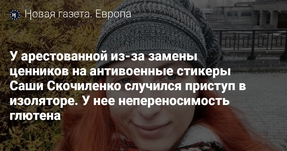 У петербургской художницы Саши Скочиленко, арестованной из-за замены ценников в магазине на антивоенные стикеры, случился приступ в изоляторе. Об этом сообщила адвокат «Апологии» Яна Неповиннова.
