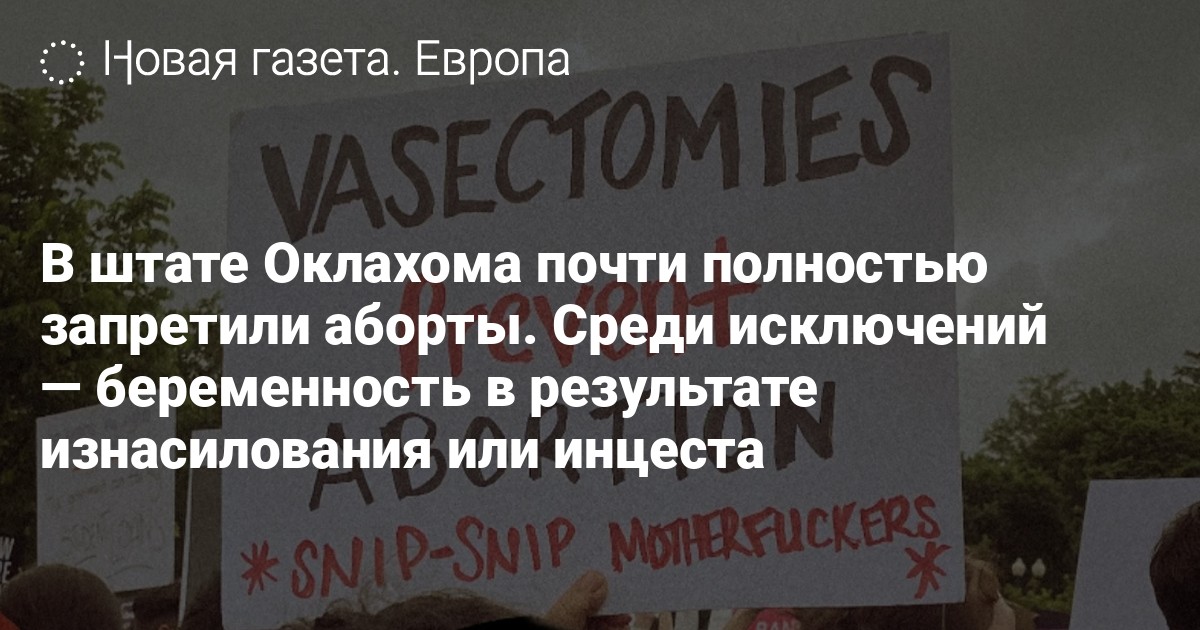 В штате Оклахома почти полностью запретили аборты. Среди исключений — беременность в результате изнасилования или инцеста
