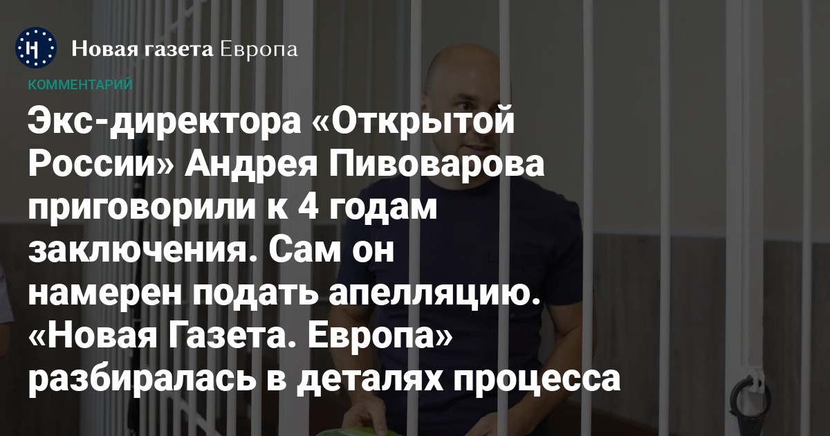 15 июля Первомайский районный суд Краснодара вынес приговор бывшему директору «Открытой России» (признана в России нежелательной организацией). Его осудили на 4 года общего режима. Также Пивоварову 8 лет запрещено заниматься общественно-политической деятельностью, в том числе с использованием интернета. Не дожидаясь пока судья до конца огласит приговор, Андрей Пивоваров усмехаясь из-за решетки клетки обращается к судье.
