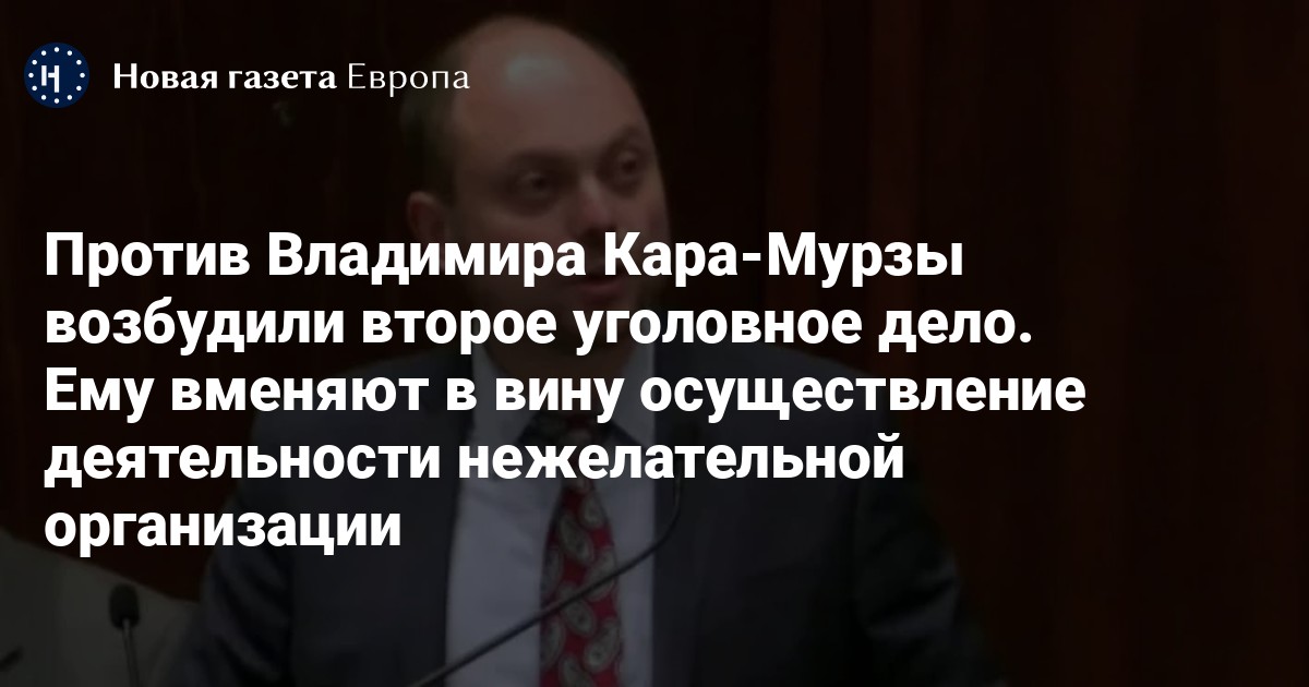 Против политика и журналиста Владимира Кара-Мурзы-младшего, находящегося в СИЗО по уголовному делу «о фейках», Главным следственным управлением Следственного комитета России возбуждено еще одно уголовное дело. Об этом сообщил «Новой газете Европа» адвокат Вадим Прохоров.