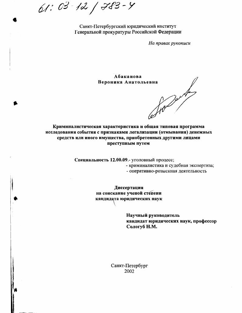 Ее диссертация «Криминалистическая характеристика и общая типовая программа исследования события с признаками легализации (отмывания) денежных средств или иного имущества, приобретенных другими лицами преступным путем» не значится в базе Диссернета.