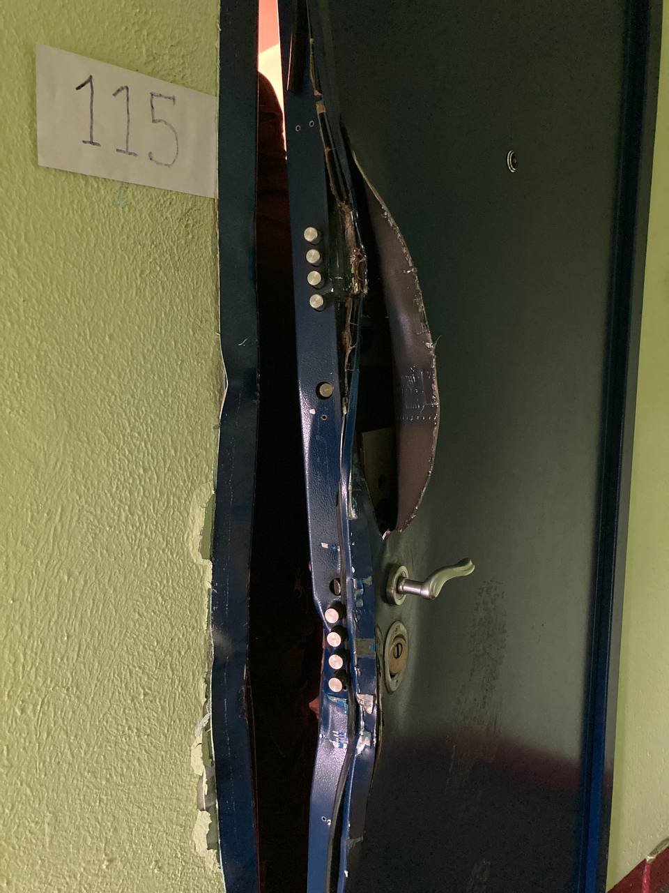 После обыска в квартире Сергея Шпильника силовики оставили после себя выломанную дверь. Фото: Telegram