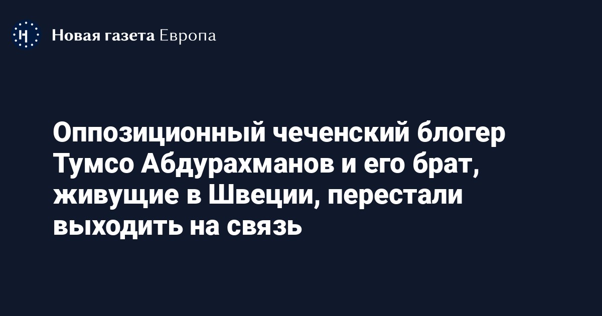 Оппозиционный чеченский блогер Тумсо Абдурахманов и его брат, живущие в Швеции, перестали выходить на связь