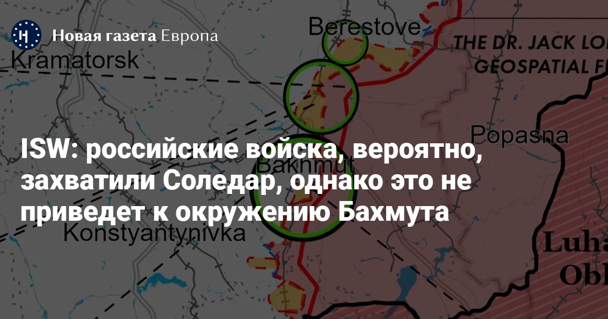 ISW по-прежнему считает, что захват Соледара — населенного пункта площадью менее 5,5 кв. миль (около 14,2 кв. км) — не позволит российским силам установить контроль над критически важными украинскими наземными коммуникациями (GLOC) в Бахмуте, а также не улучшит положение российских войск для окружения города в ближайшее время», — заявили в институте.