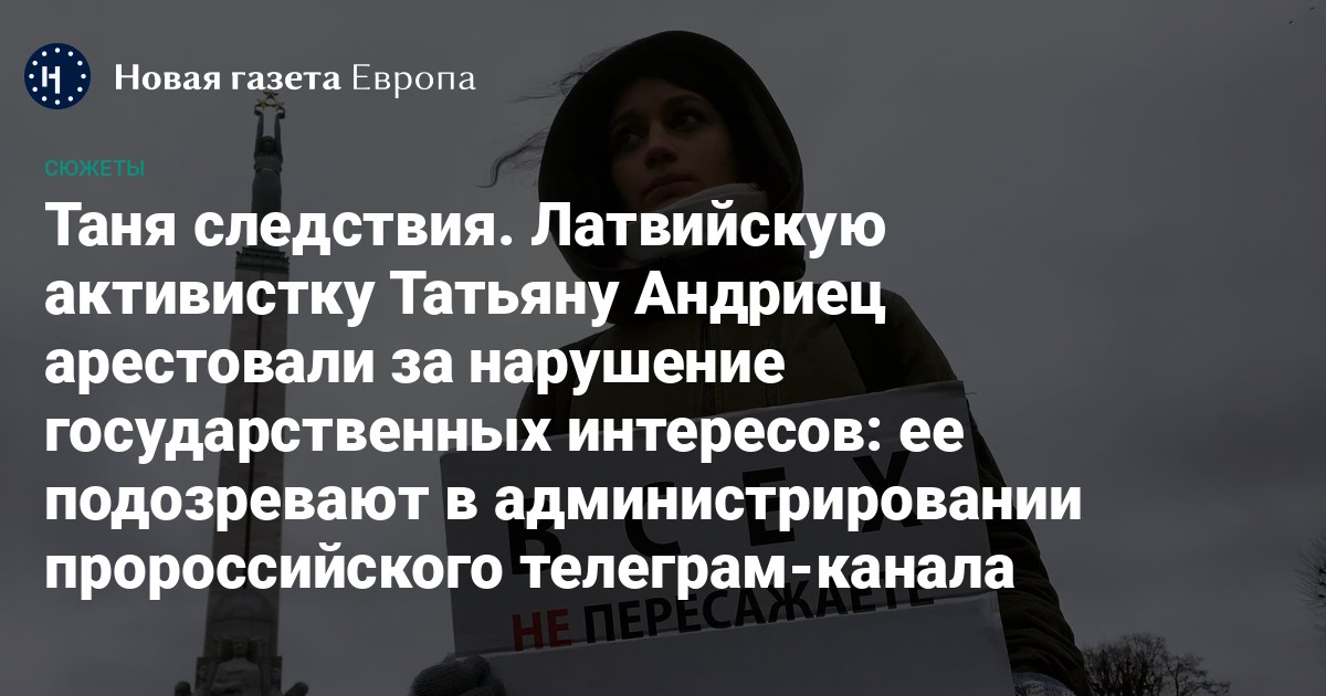 Латвийская служба безопасности не отличается многословностью, однако кое-что о причинах задержания Татьяны стало известно. В СГБ предполагают, что задержанная администрировала телеграм-канал «Антифашисты Прибалтики». Таким образом, она подозревается в совершении действий, направленных против национальных интересов Латвии.