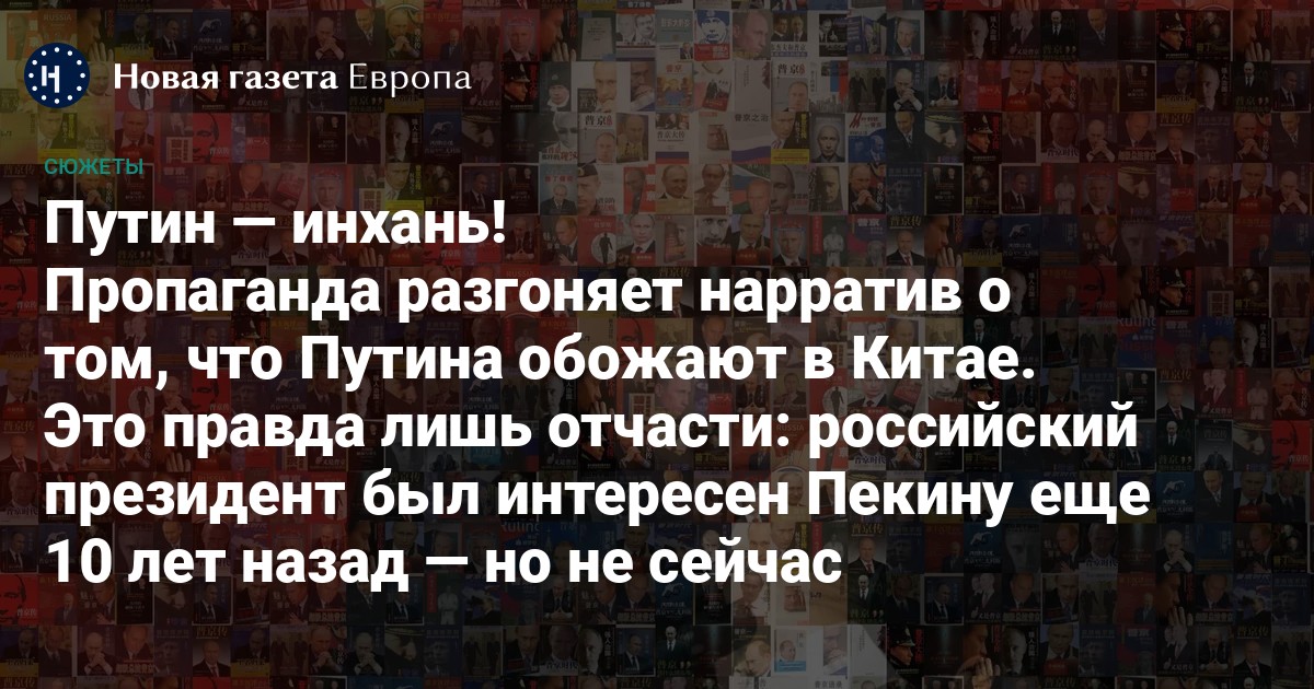 Одним из побочных эффектов визита Си Цзиньпина в Россию стало усиление в пропагандистском дискурсе тезиса о том, что президента Путина тоже очень любят в Китае. Им восхищаются и о нем пишут огромное количество книг, утверждает пропаганда. В силу языковых особенностей проверить этот тезис очень сложно — но мы это сделали. Специально по просьбе «Новой газеты Европа» китаист Алексей Чигадаев изучил рынок книг о Путине в Китае и — более того — прочитал их. Российский президент и вправду представал в них героем — но только в прошлом и только до тех пор, пока этот героизм не становился угрозой для действующего китайского режима.