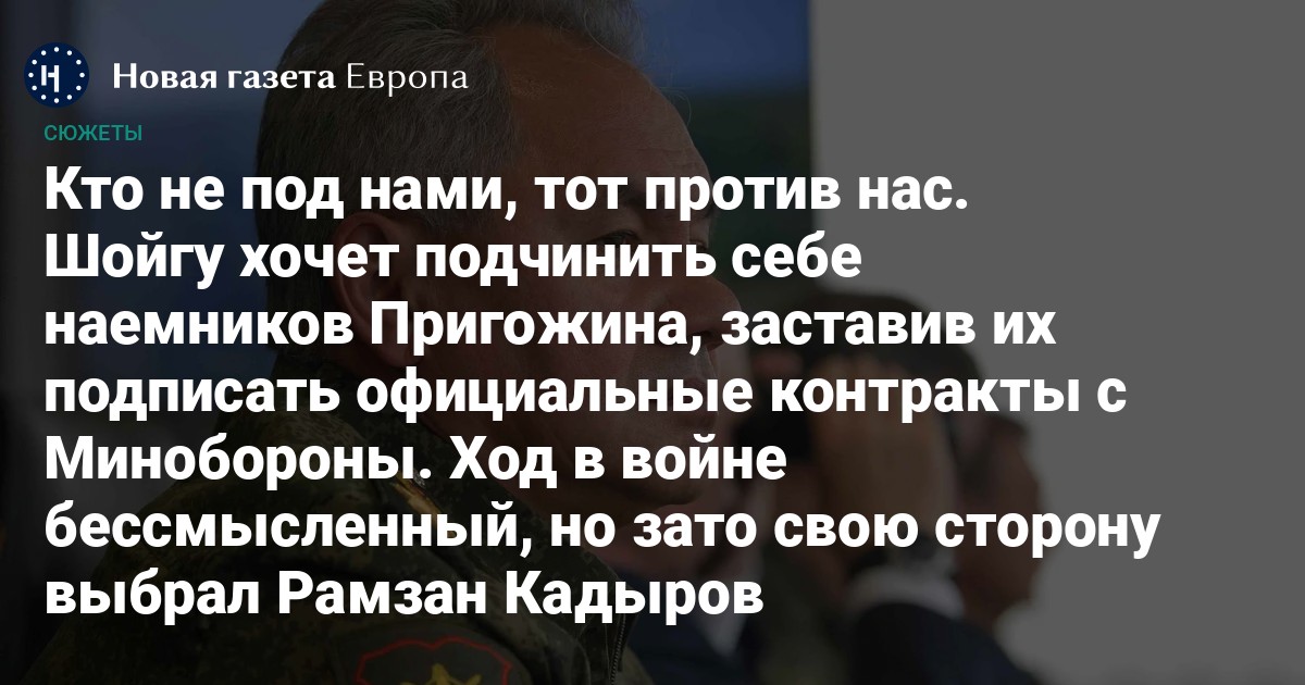 В противостоянии армейского руководства РФ и главы ЧВК «Вагнер» Евгения Пригожина произошел новый крутой поворот. На сайте военного ведомства в выходной день появилось зачитанное заместителем министра Николаем Панковым сообщение об очередном приказе Сергея Шойгу. Согласно этому нормативному акту, все добровольческие формирования в составе российской группировки войск обязаны до 1 июля подписать контракты с министерством обороны. По мысли авторов документа, это должно придать добровольческим формированиям необходимый правовой статус и создать «единые подходы к организации всестороннего обеспечения и выполнения ими задач».