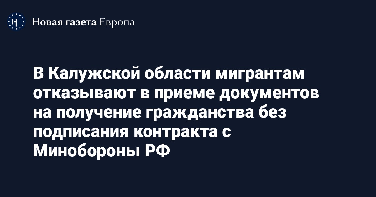 В Калужской области мигрантам отказывают в приеме документов для получения гражданства РФ, пока они не подпишут контракт на участие в войне в Украине. Об этом сообщает издание 7x7 со ссылкой на руководительницу калужского движения «За права человека» Татьяну Котляр.