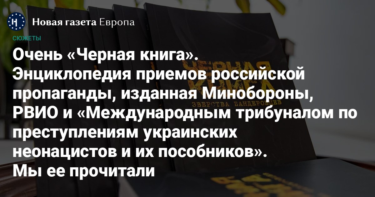 Министерство обороны РФ совместно с Российским военно-историческим обществом и некоммерческим Фондом исследования проблем демократии (оценим название) издали книгу под страшным названием «Черная книга. Зверства современных бандеровцев — украинских неонацистов 2014–2023». Предисловия к книге написали Шойгу и Мединский, а составителями выступили научный директор РВИО Михаил Мягков и член общественной палаты РФ Максим Григорьев. Наши бесстрашные журналистки смогли прочесть ее — и рассказывают, как из этого безумия можно вычленить основные приемы, которыми пользуется российская пропаганда.