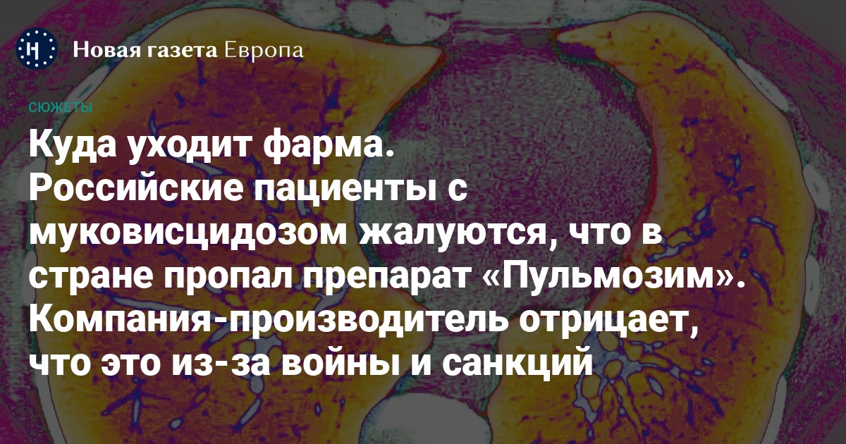 Для муковисцидоза единственным лекарством в этом списке признан препарат для ингаляций, которые помогает разбивать густую слизь в легких, чтобы ее легче было откашливать. Международное название действующего вещества — «Дорназа альфа». Оригинал этого лекарства выпускает компания «Роше» под торговым названием «Пульмозим». Они были первыми, кто вышел на мировой рынок еще в 1993 году. Много лет российские пациенты получали оригинальный препарат по федеральной программе от Минздрава, также он был в свободной продаже в российских аптеках. До последнего падения курса рубля пачка «Пульмозима», которой хватает на шесть дней ингаляций один раз в день, стоила около шести тысяч рублей.