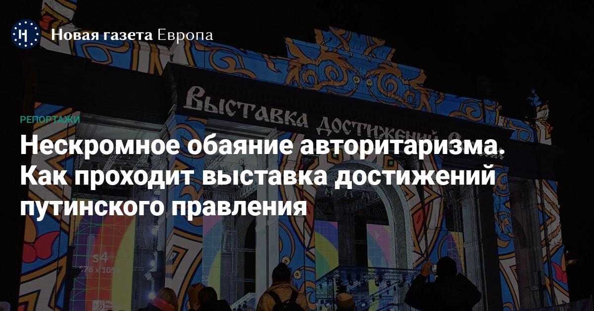 Экспозиционный центр ВДНХ был построен к 1939 году. 1 августа там открылась Всесоюзная сельскохозяйственная выставка (ВСХВ) — за месяц до начала самой кровопролитной войны в истории, в разгар тоталитарных репрессий советские граждане получили возможность полюбоваться доказательствами успехов своей страны. 84 года спустя, в День народного единства 4 ноября 2023 года, здесь открылась новая триумфальная выставка. На этот раз демонстрируются достижения почти 25 лет правления Владимира Путина.
