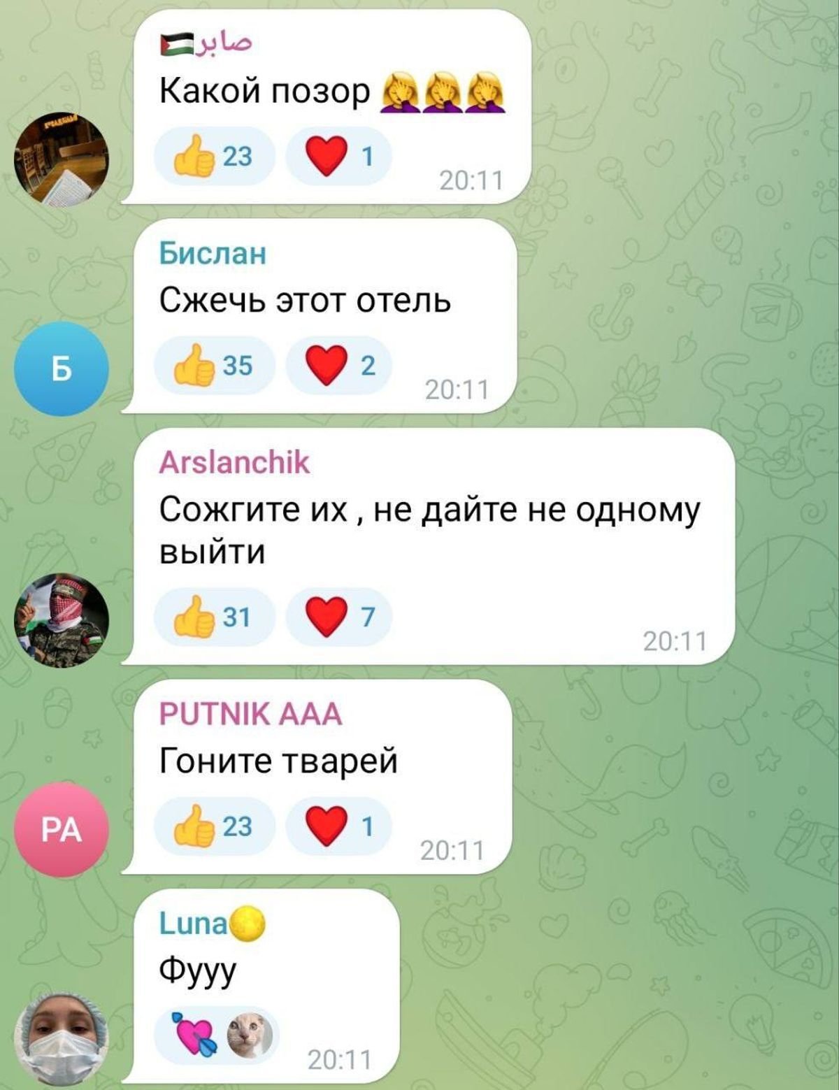 Днем ранее в городе Хасавюрте Республики Дагестан жители устроили проверку в отеле «Фламинго», пытаясь найти евреев и «беженцев из Израиля». В гостинице также установили табличку, объясняющую, что евреям вход запрещен.
