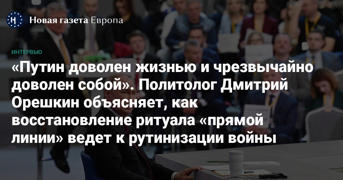 Мировые СМИ и политические эксперты продолжают обсуждать прямую линию Владимира Путина — первую с начала полномасштабного вторжения в Украину. Путин предсказуемо говорил о том, что войну спровоцировал Запад, в Украине живут нацисты, а российская экономика находится на высоте. При этом целый ряд актуальных вопросов, например, связанных с возвращением домой мобилизованных, на мероприятии не прозвучал. Политолог Дмитрий Орешкин рассказал Фариде Курбангалеевой о том, как большинство россиян приняло новую реальность бесконечной войны.