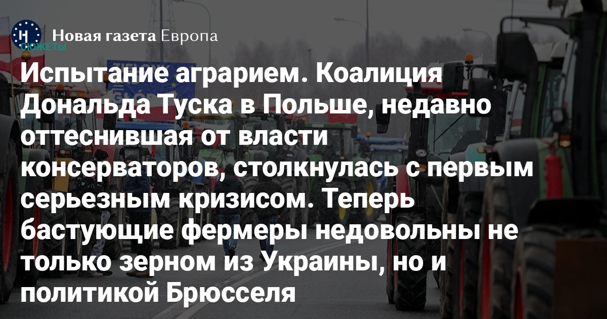 Проиграв осенью выборы, «Право и справедливость» действительно надеется спровоцировать кризис в широком коалиционном правительстве Туска. И поссорить новый кабинет министров с польскими фермерами — один из самых простых способов этого добиться.