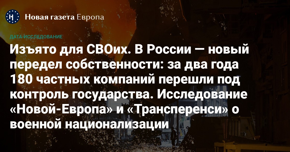 В России — новый передел собственности: за два года 180 частных компаний перешли под контроль государства. Исследование «Новой-Европа» и «Трансперенси» о военной национализации