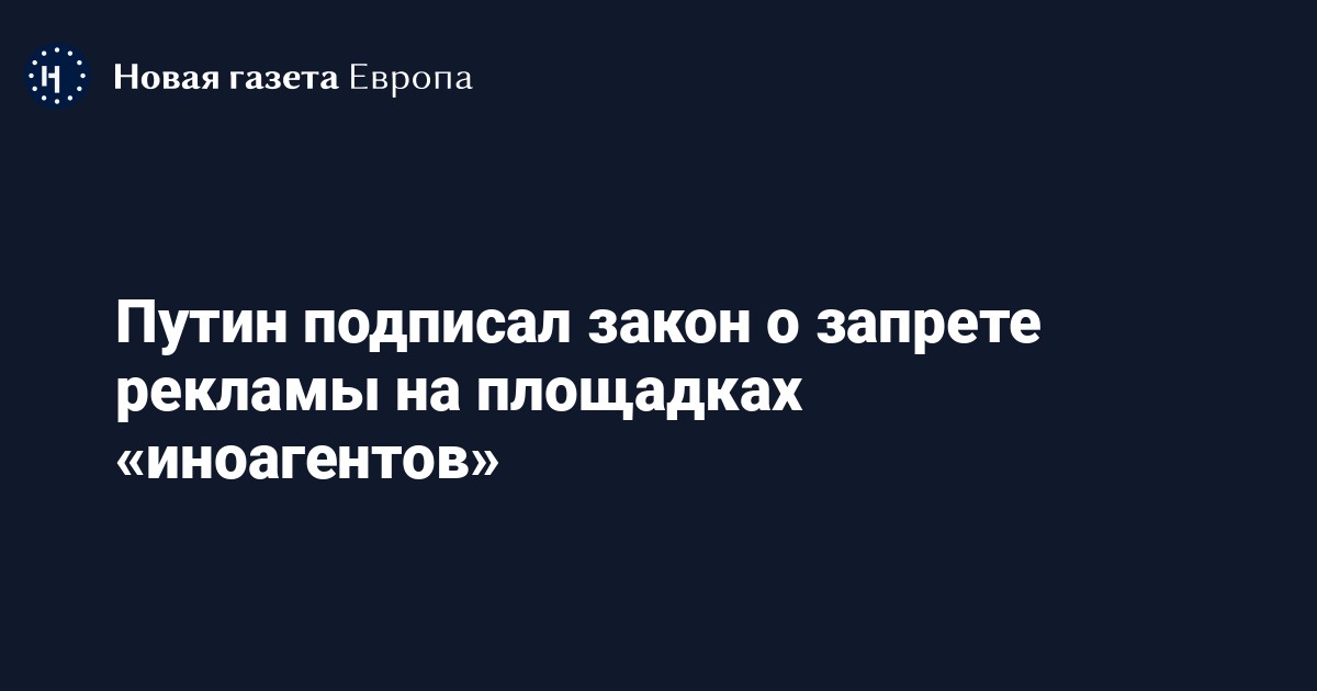 Президент России Владимир Путин подписал закон о запрете рекламы на ресурсах «иноагентов», сообщает ТАСС.