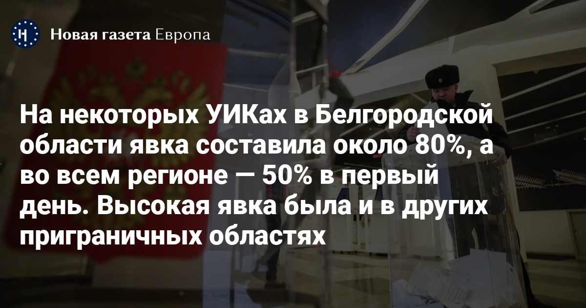 По словам источника «Новой газеты Европа», близкого к федеральному руководству одной из парламентских партий, в Белгородской области прошло массовое досрочное голосование. Таким образом, говорит собеседник «Новой-Европа», к открытию участков 15 марта, на некоторых из них проголосовали «уже 80%» от числа избирателей этих УИКов.