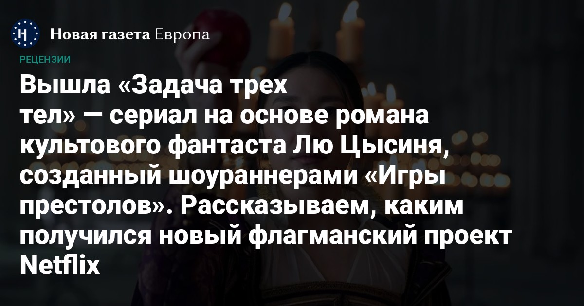 Англоязычной адаптация вышла на Netflix только сейчас, весной 2024 года. Производство амбициозного проекта возглавил продюсерский альянс, включивший в себя компании Брэда Питта, Розамунд Пайк, Райана Джонсона и Эндрю Стэнтона. Адаптацией книг Цысиня тоже занимались лично Дэвид Бениофф и Д. Б. Уайсс — шоураннеры легендарной «Игры престолов». По сей день многие проклинают дуэт за неоднозначный финал эпического фэнтези, забывая при том, что они же работали и над первыми сезонами. Проблемы с «Игрой престолов» начались у Бениоффа и Уайсса именно тогда, когда закончились романы Джорджа Мартина и додумывать историю (хоть и, говорят, по общим указаниям-спойлерам автора) пришлось самостоятельно. В случае с «Задачей трех тел» подобной напасти, кажется, удастся избежать: