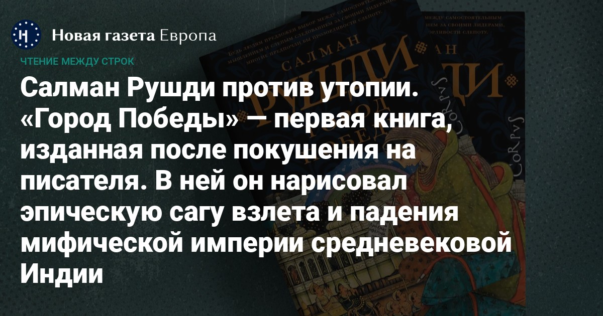 12 августа 2022-го Салман Рушди подвергся нападению. 75-летний прозаик получил множественные ножевые ранения и потерял глаз. И хотя работу над «Городом Победы» (издан на русском языке издательством Corpus) писатель завершил еще в июле 2022-го, поверить в это непросто: в финале романа есть драматичная сцена буквально ослепления героев.