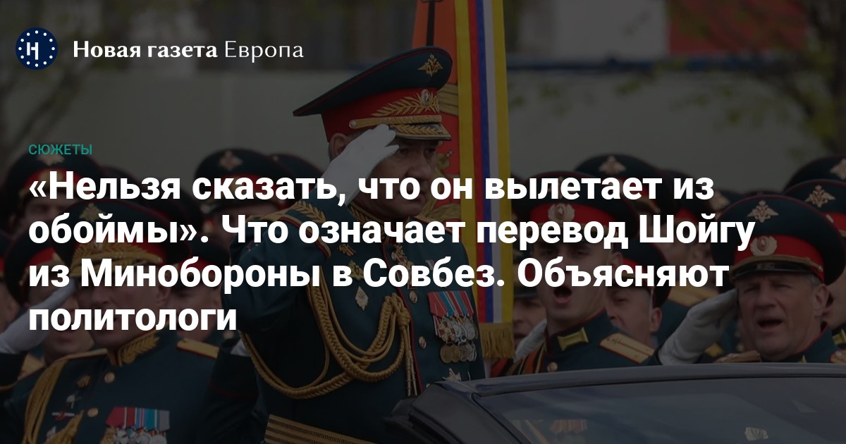 Сергей Шойгу после 12 лет на посту главы Минобороны займет пост секретаря Совета безопасности. Политолог Федор Крашенинников в разговоре с «Новой-Европа» заявил, что для Шойгу это «очевидно не повышение, но нельзя сказать, что это опала, что его наказали и куда-то дели».