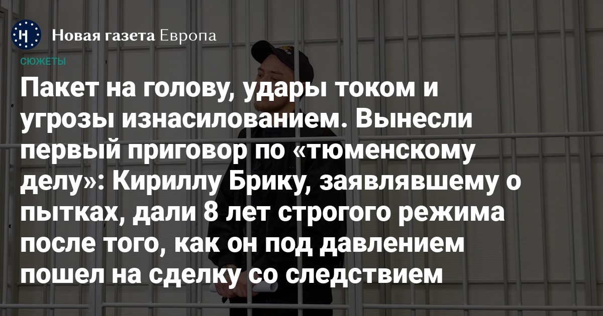 Окружной военный суд в Екатеринбурге приговорил первого фигуранта «Тюменского дела» — уральского антифашиста Кирилла Брика — к восьми годам строгого режима. Его дело рассматривали отдельно от остальных фигурантов, поскольку он заключил досудебное соглашение и полностью признал вину. Друзья осужденного и группа поддержки «Тюменского дела» уверены, что признание он подписал под постоянным давлением со стороны силовиков и угрозой пыток. Как только он пошел на сделку со следствием, он прекратил переписку с друзьями из СИЗО и отказался от своего адвоката.