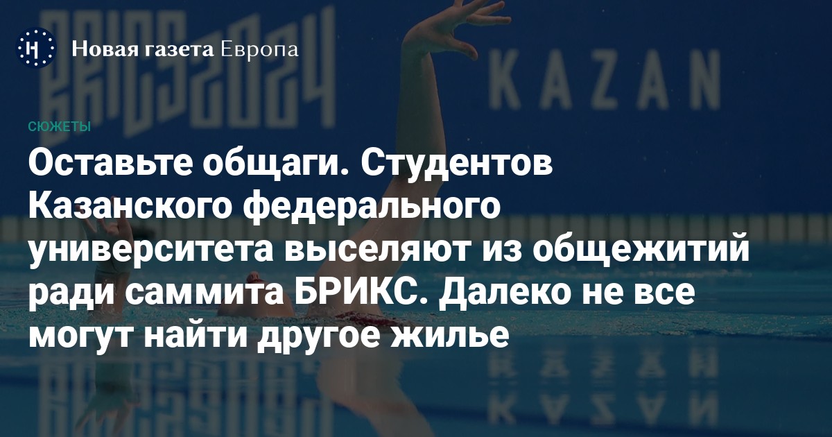 В октябре в Казани пройдет саммит БРИКС. Организаторам понадобились общежития студентов Казанского федерального университета (КФУ) — там хотят разместить часть гостей. Сейчас студентов активно выселяют, на каких основаниях — непонятно. Как иногородние студенты продолжат учебу в сентябре, неясно.