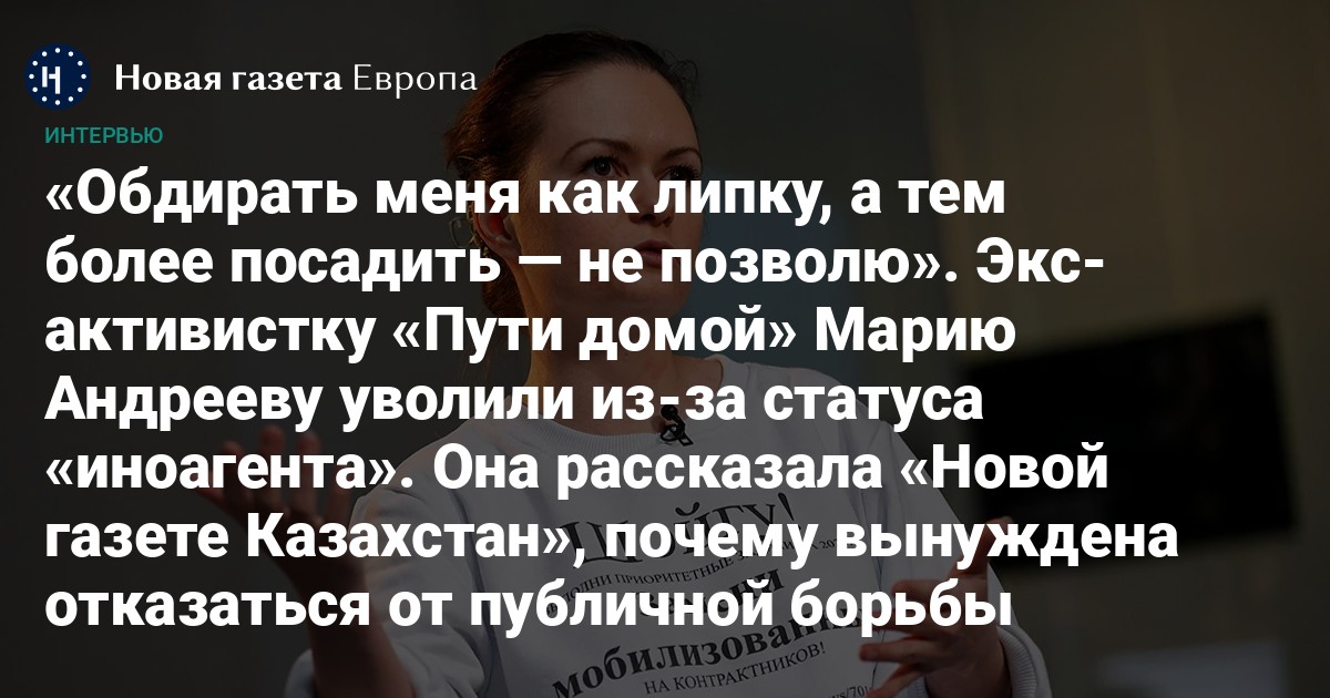 В список Минюста Андреева попала в мае. Тогда же в перечень внесли и движение «Путь домой», которое требует провести ротацию военных, призванных на войну в Украине в рамках мобилизации. Активистка заявила, что сейчас, после всех попыток ее напугать, она вынуждена отказаться от публичной борьбы.