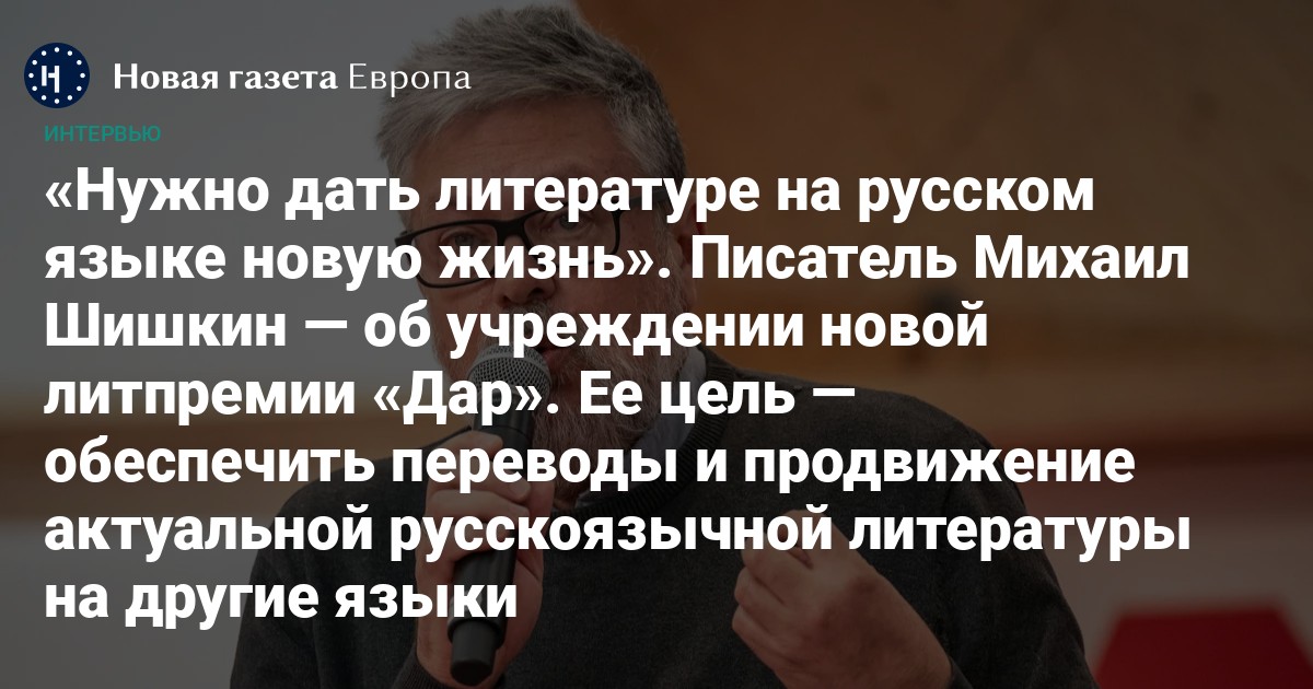 Михаил Шишкин — один из главных современных русскоязычных писателей, активно переводимых и издаваемых на других языках. Он объявил о создании новой литературной премии, которая называется «Дар»: и название, и смысл вдохновлены Набоковым. Главный приз — грант на перевод произведения-победителя на английский, немецкий и французский языки, премия читательского голосования — денежный приз.