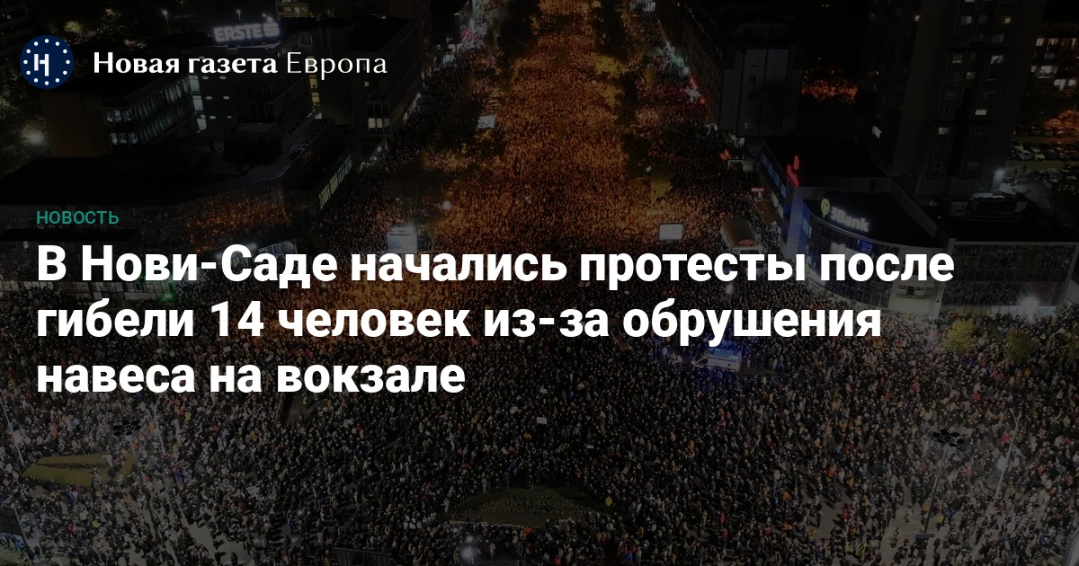 Тысячи протестующих в сербском Нови-Саде вышли на протесты с требованием отставки властей после того, как 1 ноября 14 человек погибли в результате обрушения бетонного навеса на железнодорожном вокзале, пишет издание Danas.