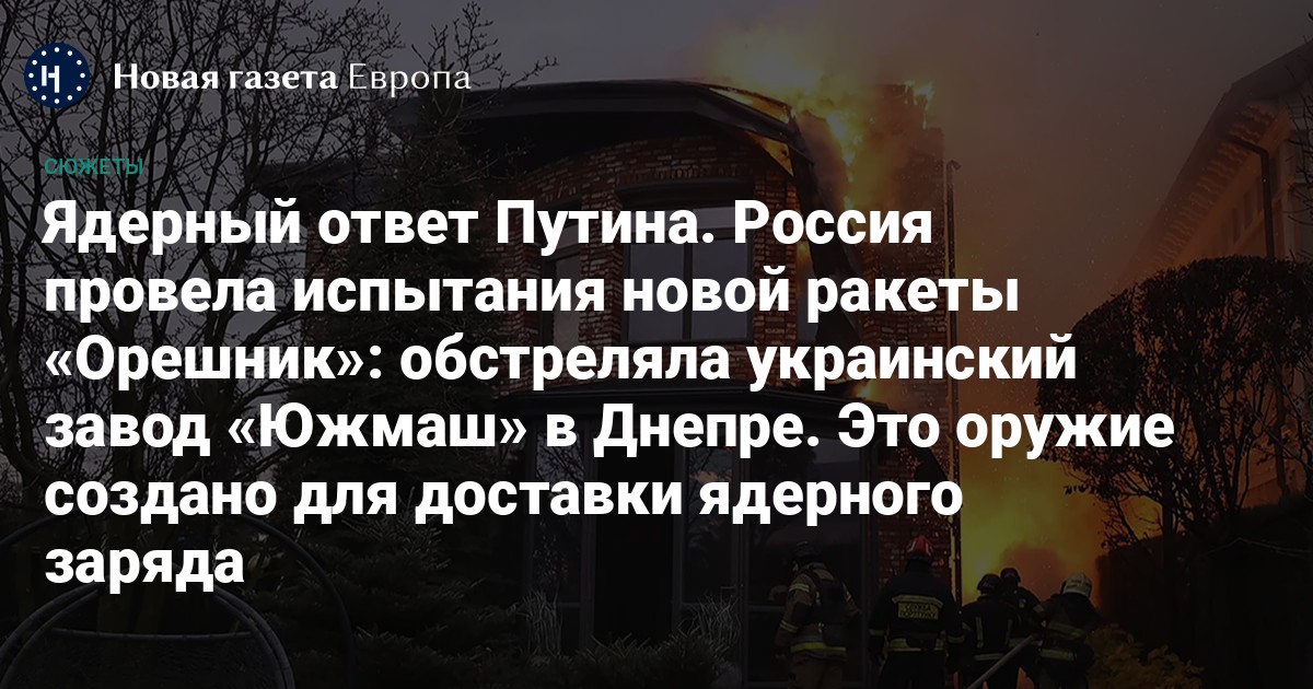— Судя по всему, использованная ракета имела дальность в 6000 километров. Это лишь на 500 километров больше предела, который ограничивался договорами о ракетах средней дальности, — утверждает израильский военный обозреватель Давид Шарп. — Могу предположить, что у удара была кроме прочего и чисто военная цель. Так, завод «Южмаш» может делать ракеты для украинской оборонки. Точно мы этого не знаем, но россияне вполне в такое верят, судя по всему. Вероятно, что целью этого обстрела было что-то, чего не смогли достать ни «Искандеры», ни «Кинжалы». У этой ракеты боеголовка вдвое тяжелее и весит, судя по имеющейся информации, 1–1,2 тонны. Кроме этого, есть и еще одна вероятная причина такого обстрела. Возможно, решено было провести проверку сравнительно нового боеприпаса в деле. Возможно, что над этим изделием еще работают, и оно пока сыровато. Вот и решили использовать его для реального обстрела.