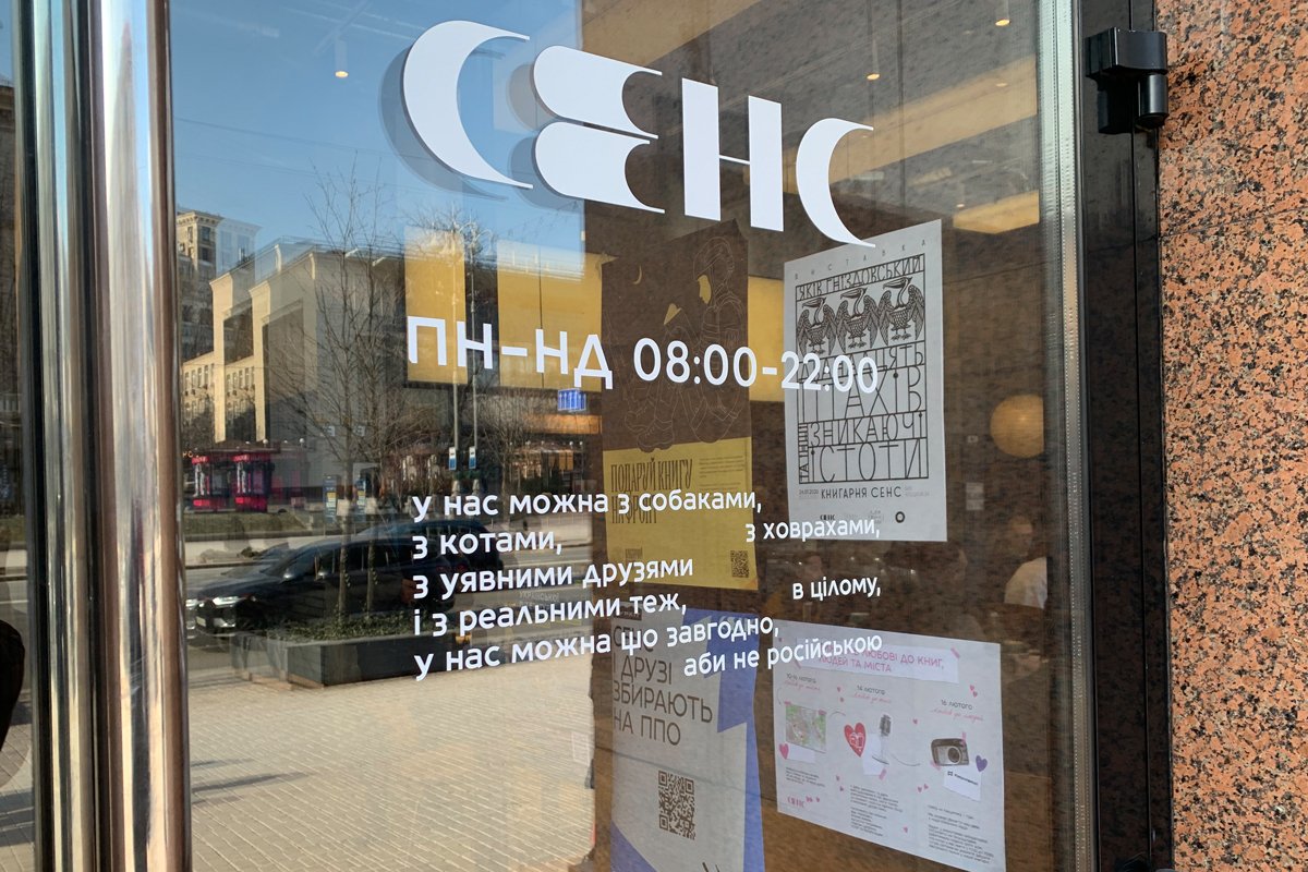 Полвека в этом здании жил советский «Фарфор-фаянс», потом, не особо долго, располагался филиал магазина «Всі. Свої. Дім и декор». Мода на чтение украинской литературы — художественной, исторической, мемуаристики — заметно пошла в рост перед большой войной. «Сенс» на Крещатике, второй по счету магазин сети, открылся посреди обстрелов, в феврале 2024-го.
