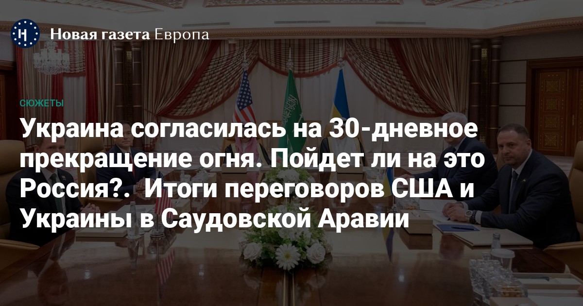 В саудовском городе Джидда закончилась встреча делегаций Украины и США. Киев принял предложение Вашингтона ввести режим немедленного временного прекращения огня на 30 дней, который может быть продлен по взаимному согласию российской и украинской сторон, сообщается в заявлении на сайте президента Украины по итогам переговоров с США в Саудовской Аравии.