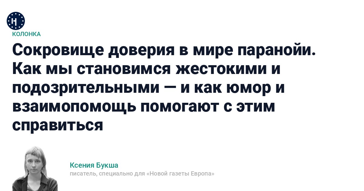 Недавно я поручила двоюродному брату продать в России мою машину. Довести дело до конца оказалось непросто. У каждого из потенциальных покупателей были свои соображения о том, как мы можем их обмануть. Каждый категорично требовал дополнительных и максимальных гарантий даже там, где их не предусматривали юридические нормы. «Да, такая вот у нас жизнь пошла, — подтвердил брат в мессенджере. — Все злые стали, нервные, все друг друга подозревают».