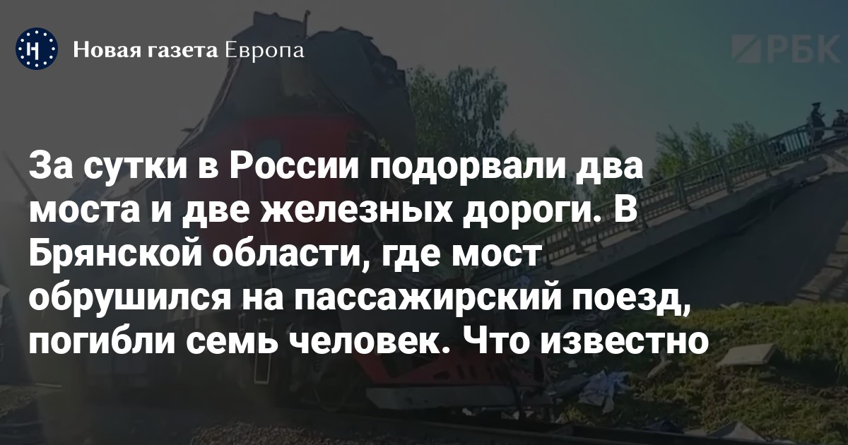 За сутки в Брянской и Курской областях, а также в оккупированной Запорожской области подорвали два моста и две железных дороги. В результате обрушения моста в Брянской области семь человек погибли, десятки получили ранения. «Новая-Европа» рассказывает о том, что известно на данный момент.