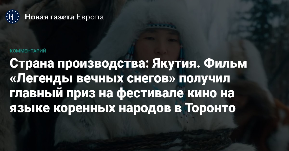 8 июня фильм якутского режиссера Алексея Романова «Легенды вечных снегов» был удостоен награды за лучшую работу на языке коренных народов на фестивале imagineNATIVE в Торонто. Этот фестиваль, проходящий в 25-й раз, считается своего рода «Оскаром» для кино, отражающего культуру коренных народов мира. За последние два десятилетия якутское кино неоднократно участвовало в различных программах смотра. Награда «Легендам вечных снегов» отражает важную тенденцию, в русле которой продолжает развиваться киноиндустрия Республики Саха.