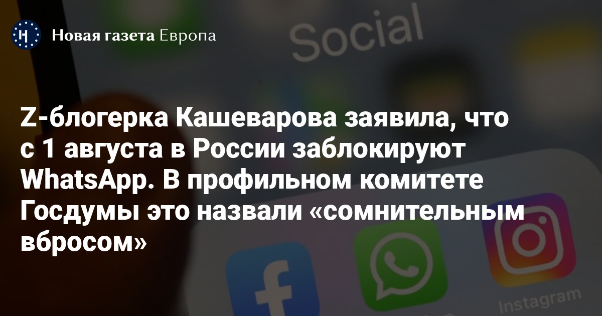 Z-блогерка Кашеварова заявила, что с 1 августа в России заблокируют WhatsApp. В профильном комитете Госдумы это назвали «сомнительным вбросом»