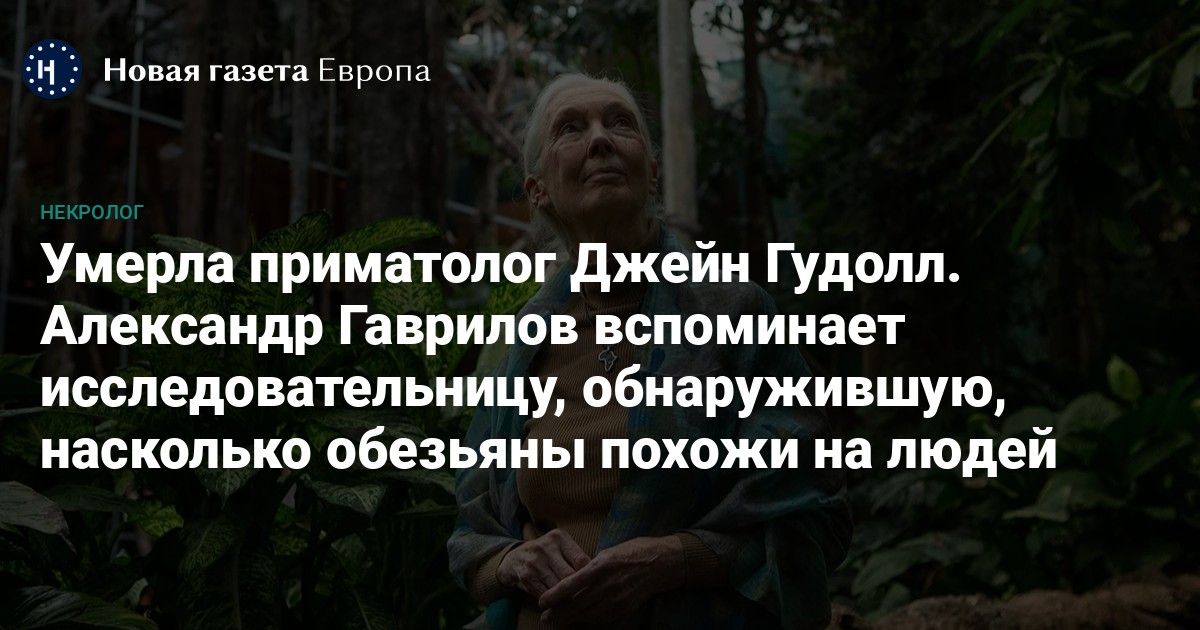 Умерла приматолог Джейн Гудолл. Александр Гаврилов вспоминает исследовательницу, обнаружившую, насколько обезьяны похожи на людей