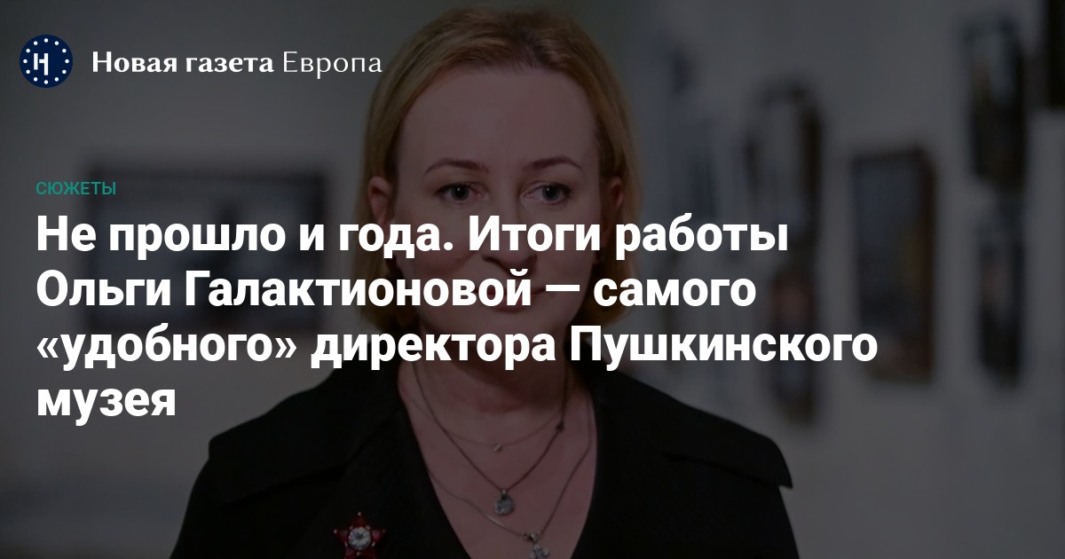 В отличие от предыдущих руководителей, Галактионова работала не в кабинете в главном здании музея, а в административном корпусе, где расположена бухгалтерия. На первой ознакомительной встрече с коллективом директор, по словам источника, заявила, что она «очень хороший управленец» и собирается «make Pushkinsky great again», анонсировала грядущие перемены в работе музея, при этом подчеркнула, что речь не идет о сокращении научных сотрудников, кураторов, смотрителей и других профильных специалистов — их она назвала «священными коровами музея». И предупредила, что «саботаж и итальянские забастовки» будут жестко пресекаться. «Чувствуется, что она человек, поставленный Минкультом, в доску свой», — считает собеседник «Новой газеты Европа».