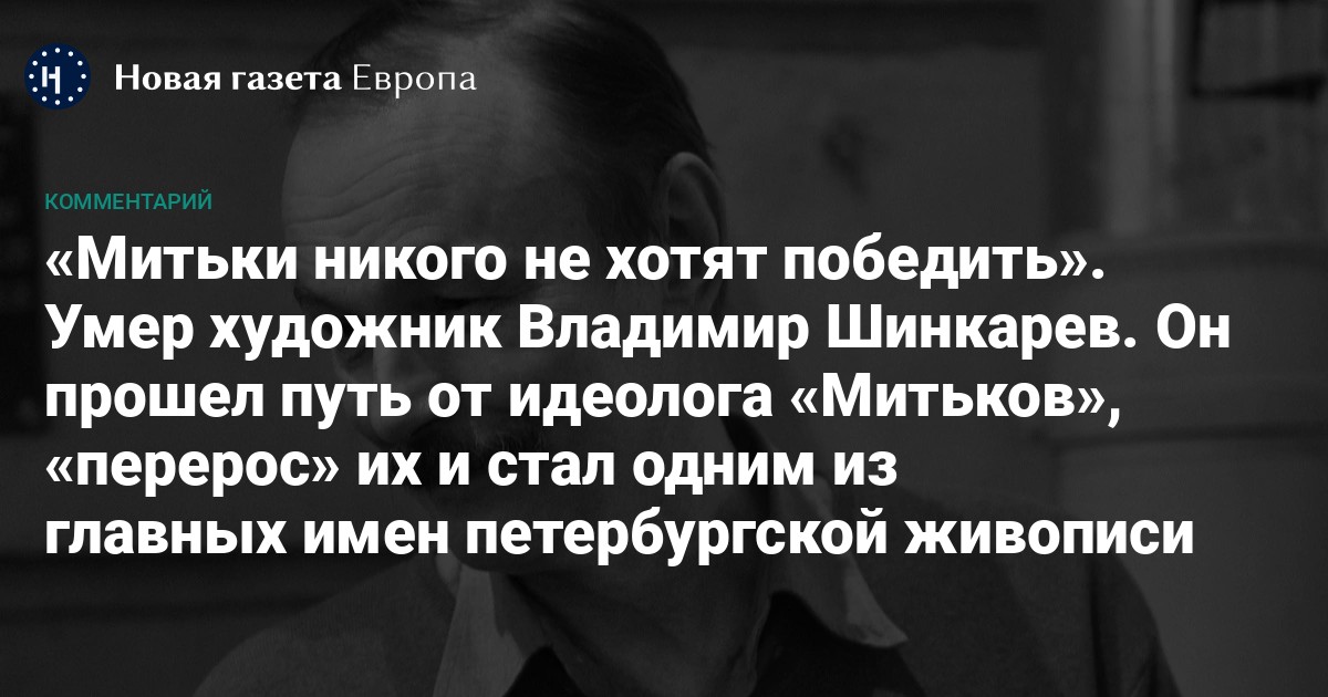 «Умер единственный художник, которого при жизни я называла гением, — Владимир Шинкарев. Самый блистательный из российских живописцев последних 40 лет. Светлая память, благодарность и огромная любовь к нему и его искусству».